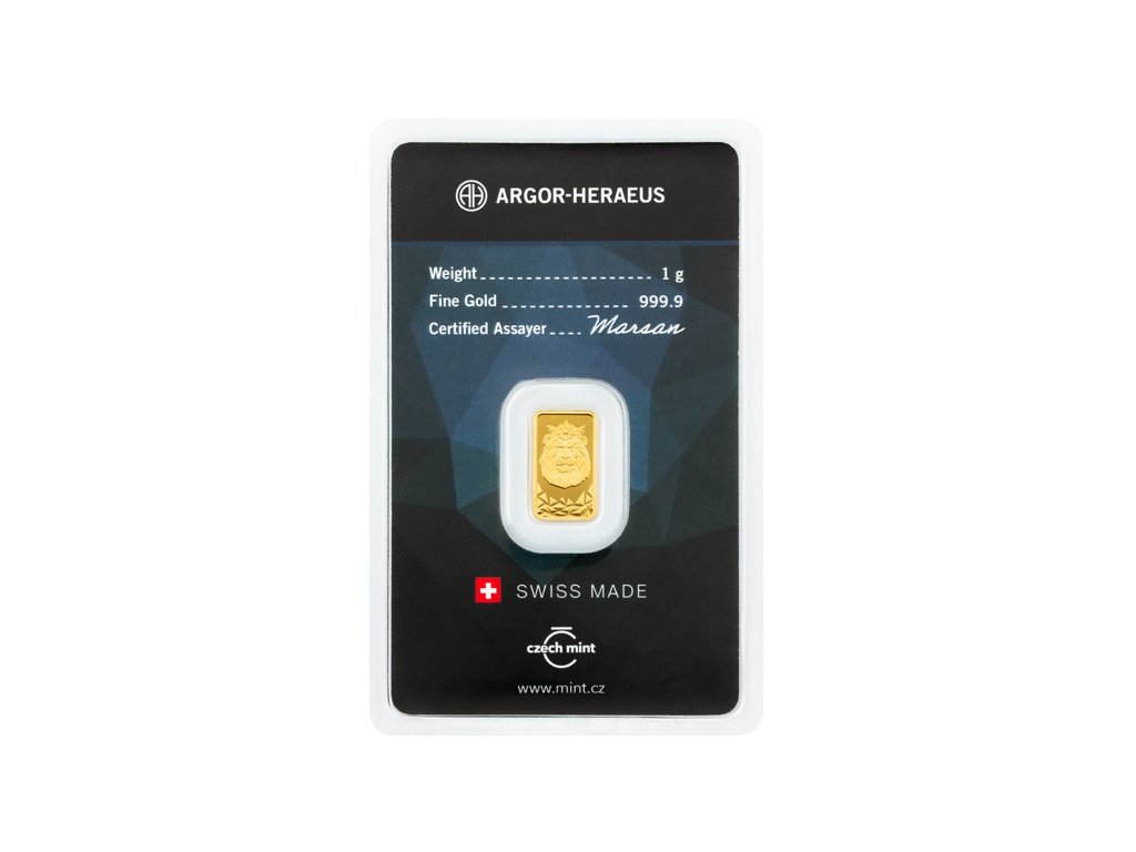 Investiční zlatý slitek 1g - Argor Heraeus/ČM - Český lev